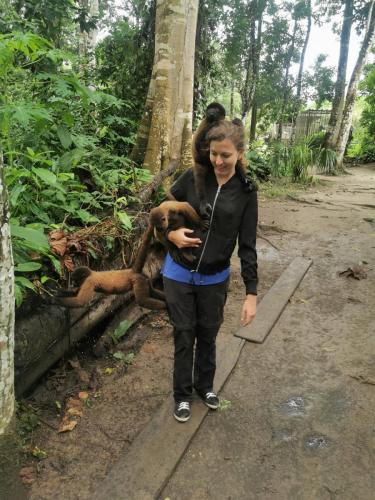 We went to the center located outside of Iquitos by a local bus, which is still a unique experience. A grumpy spanish guide told us that they have a german volunteer and quickly brought us to him. On the way we saw some of the other animals, like monkeys. The center is keeping them for a couple of months before releasing them to the nearby island, “La Isla de los Monos”. But more about the monkeys later on… ๐๐